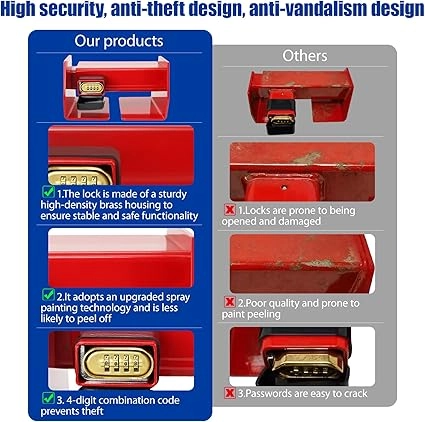 - Premium Security Combination Lock: Equipped with a customizable 4-digit keyless mechanism, providing enhanced protection and convenience. The corrosion-resistant build ensures a reliable and extended service life.